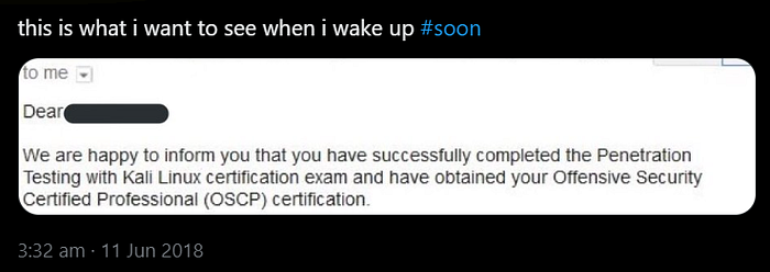 And this is me quoting the tweet in 2023, now as OSCP certified!