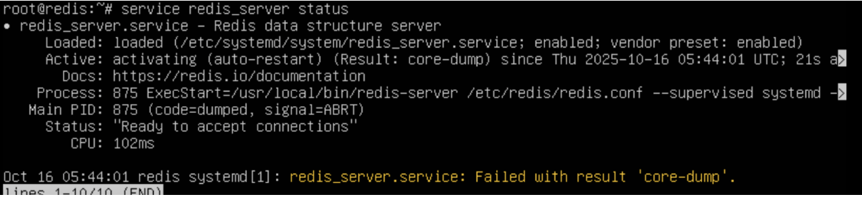- The version of redis must be less than 8.2.2, 8.0.4, 7.4.6, 7.2.11, or 6.2.20