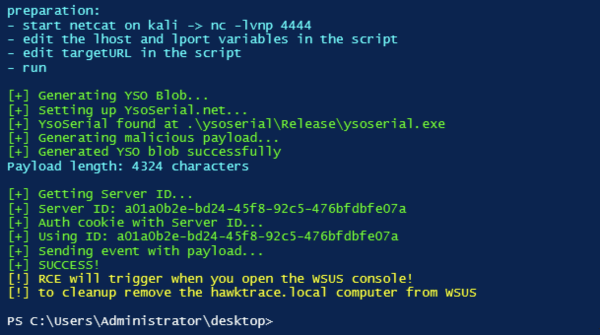 The reverse-shell payload will be triggered when an administrator opens the WSUS management console.