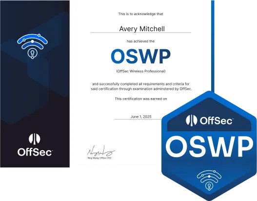 The OffSec Wireless Professional certification demonstrates the ability to identify and exploit vulnerabilities in 802.11 networks