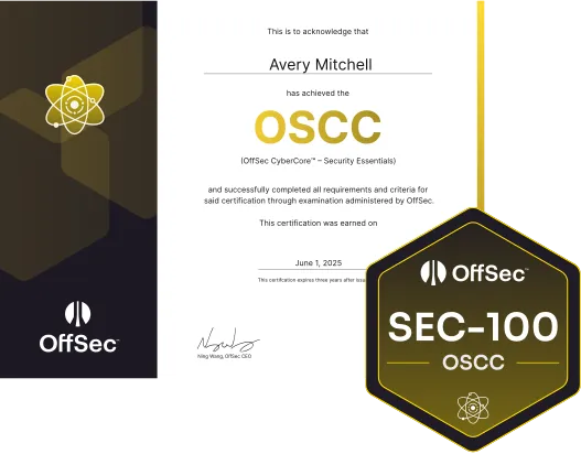 - Earn OffSec's newest certification: OffSec Cybercore (OSCC-SEC)