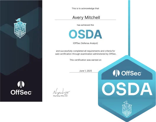 The OffSec Defense Analyst certification validates your expertise in macOS security and demonstrates your ability to detect, analyze, and assess a potential security incident through live exercises