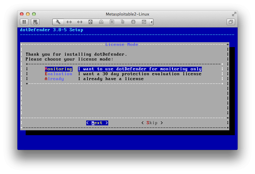 For this demonstration we only need to use dotDefender for monitoring. Once that is selected we can hit “Next”.