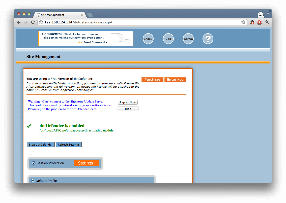 Once it has been added we will see the new section. Now the only thing left to do is select “Start dotDefender”