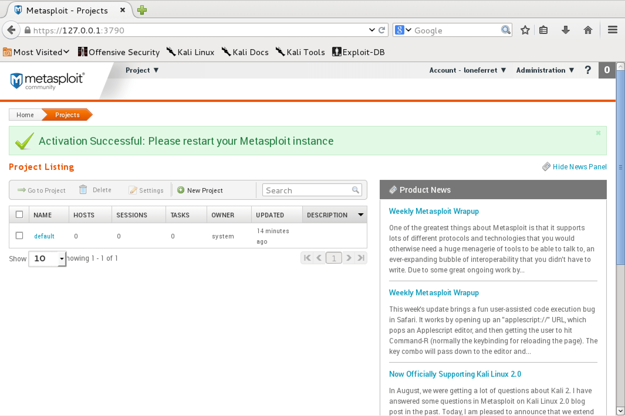 - Congratulations!!! You have successfully activated your copy of Metasploit Community Edition.