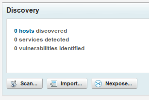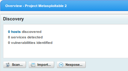 - Once the project is loaded, click on ‘Nexpose’ in the ‘Discovery’ section as follows: