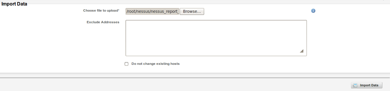 - Let us click on ‘Browse’ and look for our Nessus report. Please note that if necessary, you can exclude certain IP addresses from being imported altogether.