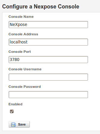 - Configure the NeXpose Console accordingly, and then click on ‘Save’ as follows: