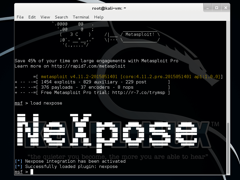 Nexpose Plugin loaded via msfconsole | Metasploit Unleashed